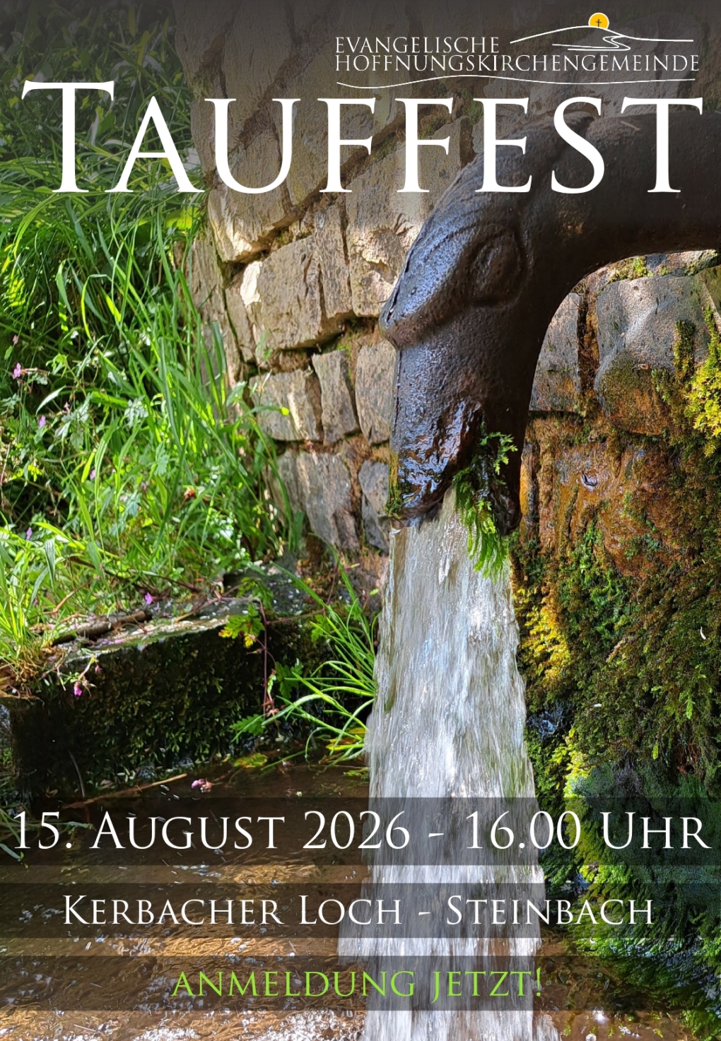 Das nächste Tauffest der Ev. Hoffnungskirchengemeinde findet am 15. August 2025 ab 16.00 Uhr im Kerbacher Loch bei Steinbach statt.