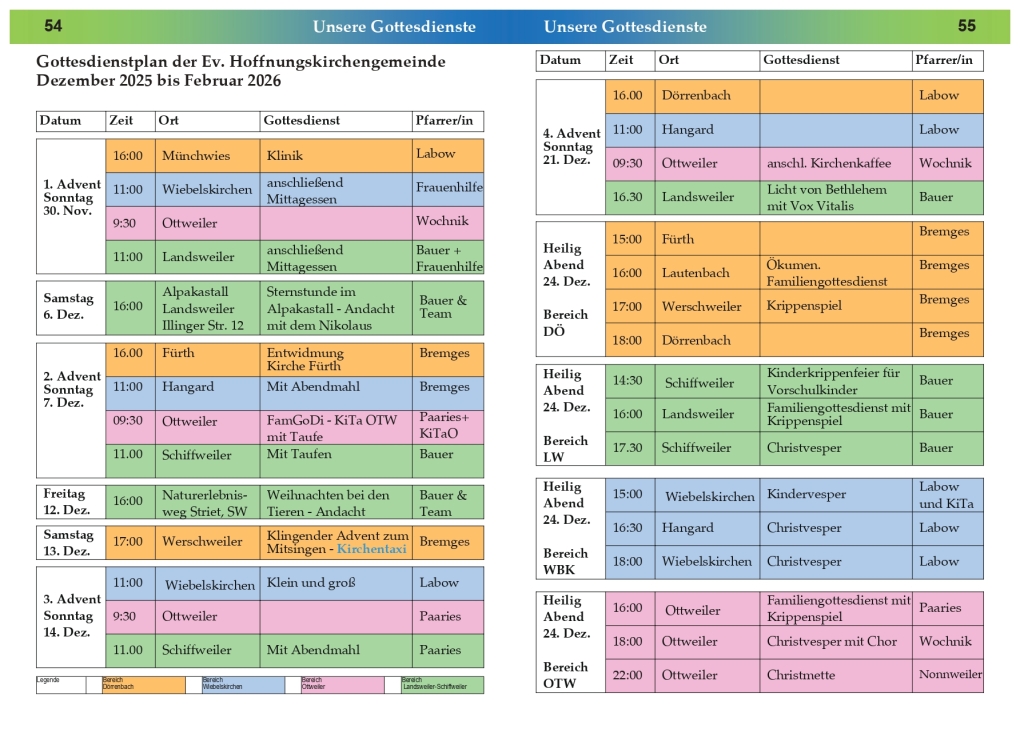 Unsere Gottesdienste im Jahr 2025/2026